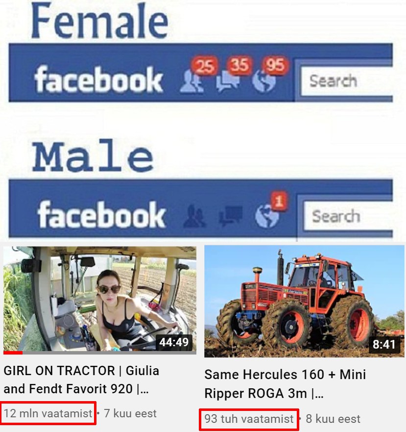 kui isegi see et naine lihtsalt traktoriga sõidab – toob talle 12 miljonit vaatamist, 100 korda rohkem kui mees traktoriga sõidab youtube videos