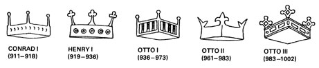 Saksa neljanurgelised ja neljaharulised kuningakroonid, 10. sajand.