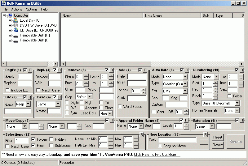 Simple utility which allows you to rename multiple files and folders, based upon flexible criteria. For example, you can add a prefix or suffix to a file, or you can change three letters with four other letters in a filename. There are lots of ways to manipulate file and folder names. (Jim Willsher 2000-2008)